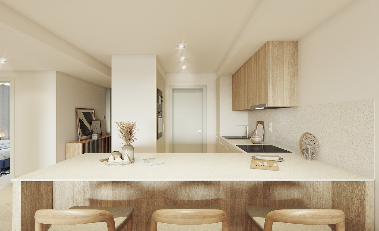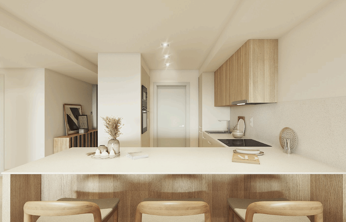 - 2-bedroom apartments: from 103 m² built + 33 m² terrace.