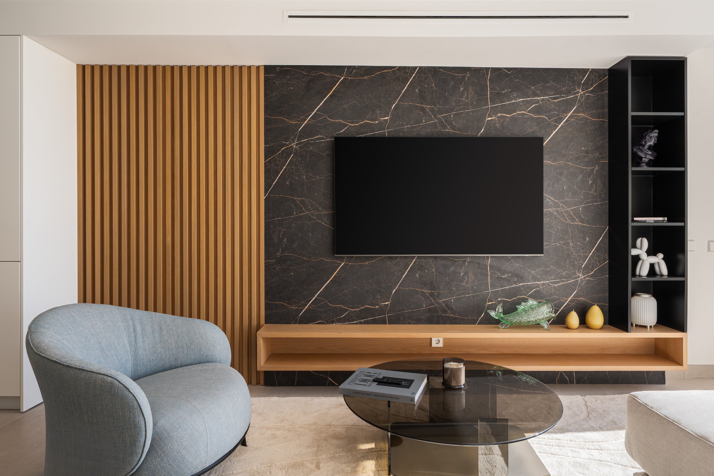 Inside, elegant design meets functionality. The apartment offers three spacious bedrooms, two with en-suite bathrooms, plus an additional bathroom and guest toilet. Every detail reflects quality — Natuzzi furniture, Cavalli wallpaper, and Siemens appliances in the sleek open-plan kitchen. The living and dining areas flow naturally to the terrace, creating a light-filled, relaxing atmosphere ideal for entertaining or family life.