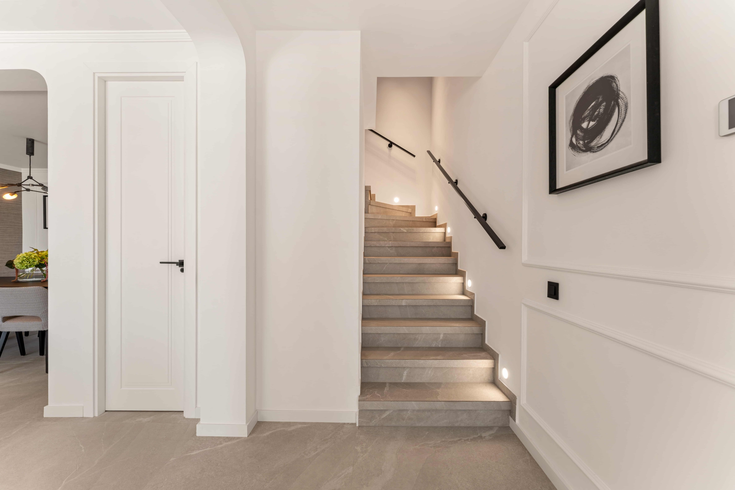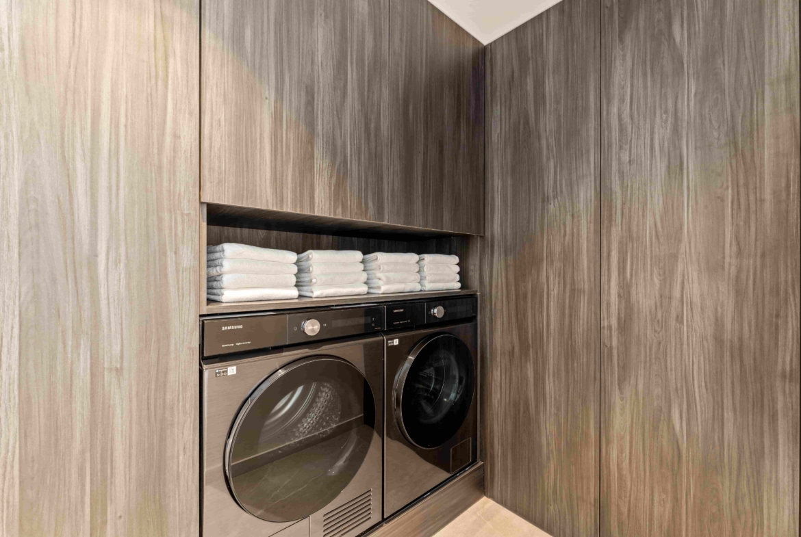 The main level features a bright open-plan layout with a spacious living area, dining space, and a fully fitted kitchen with premium Samsung appliances. Clean lines, natural light, and high-end finishes define the interior, creating a warm and inviting atmosphere that transitions seamlessly to the terrace — perfect for relaxation or entertaining.