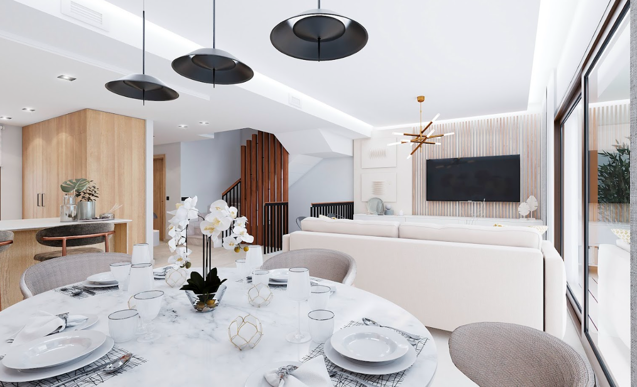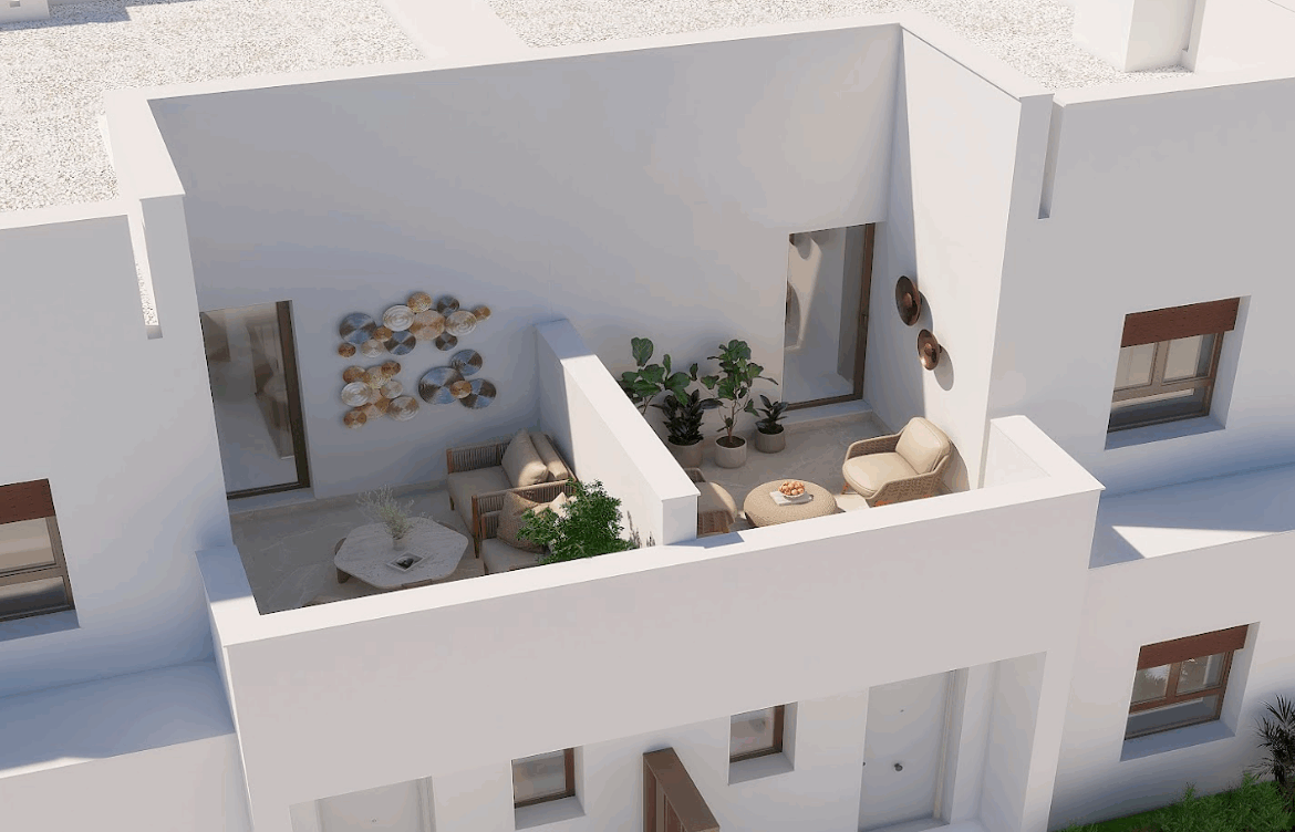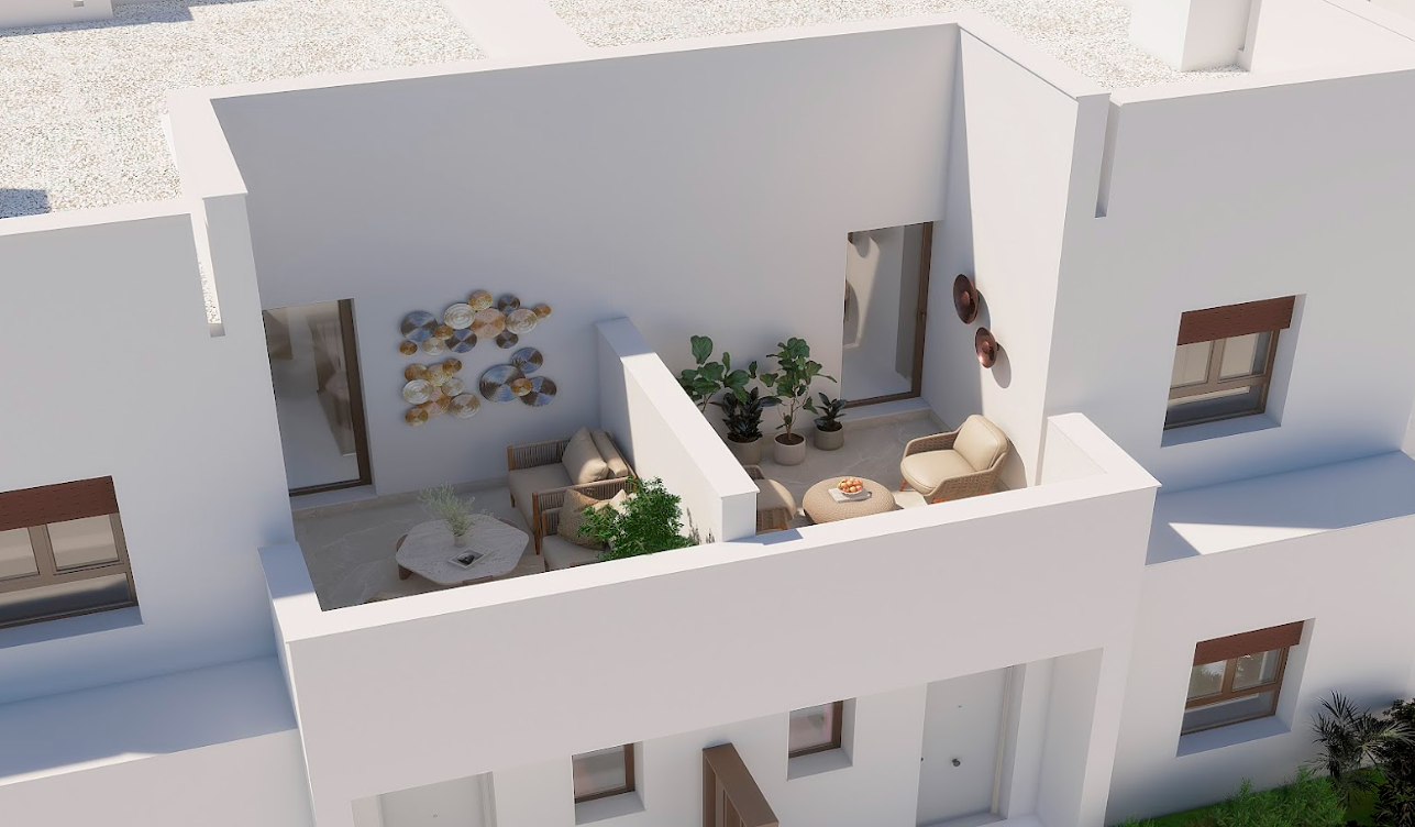 - Interiors: Open-plan ground floor integrating the kitchen, living room, and a large terrace. The first floor features 3 spacious and bright bedrooms and 2 bathrooms.