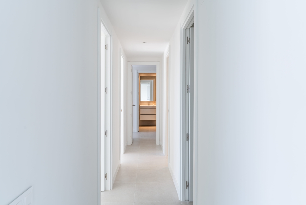 This spacious penthouse features three bedrooms, three bathrooms, and a guest toilet, providing the ideal balance of privacy and functionality for both families and professionals. Its south-facing orientation fills the interiors with natural light, while the open-plan living area flows effortlessly into a modern, fully equipped kitchen and out to an expansive terrace with panoramic sea views — the perfect setting for alfresco dining or sunset gatherings.