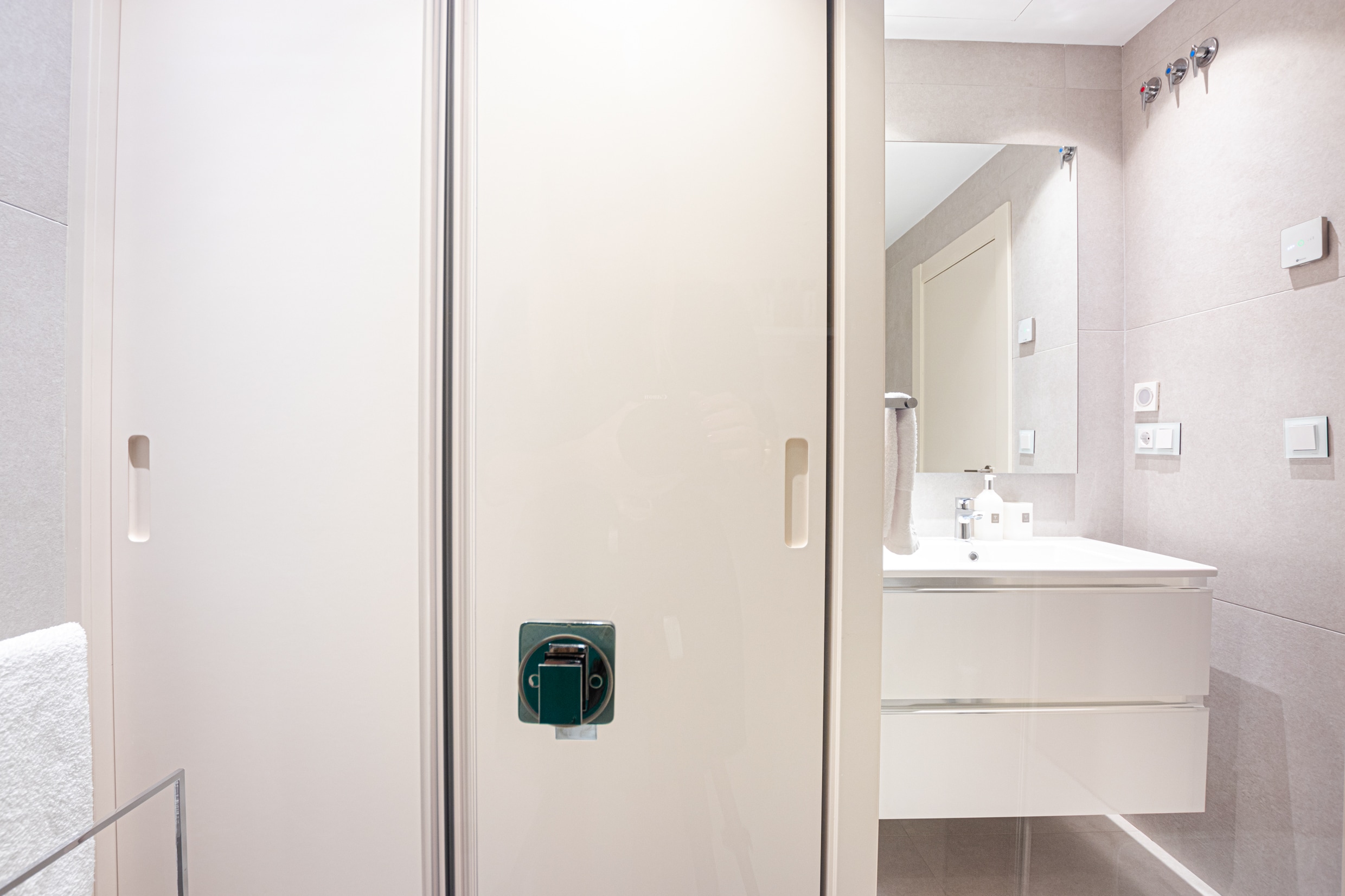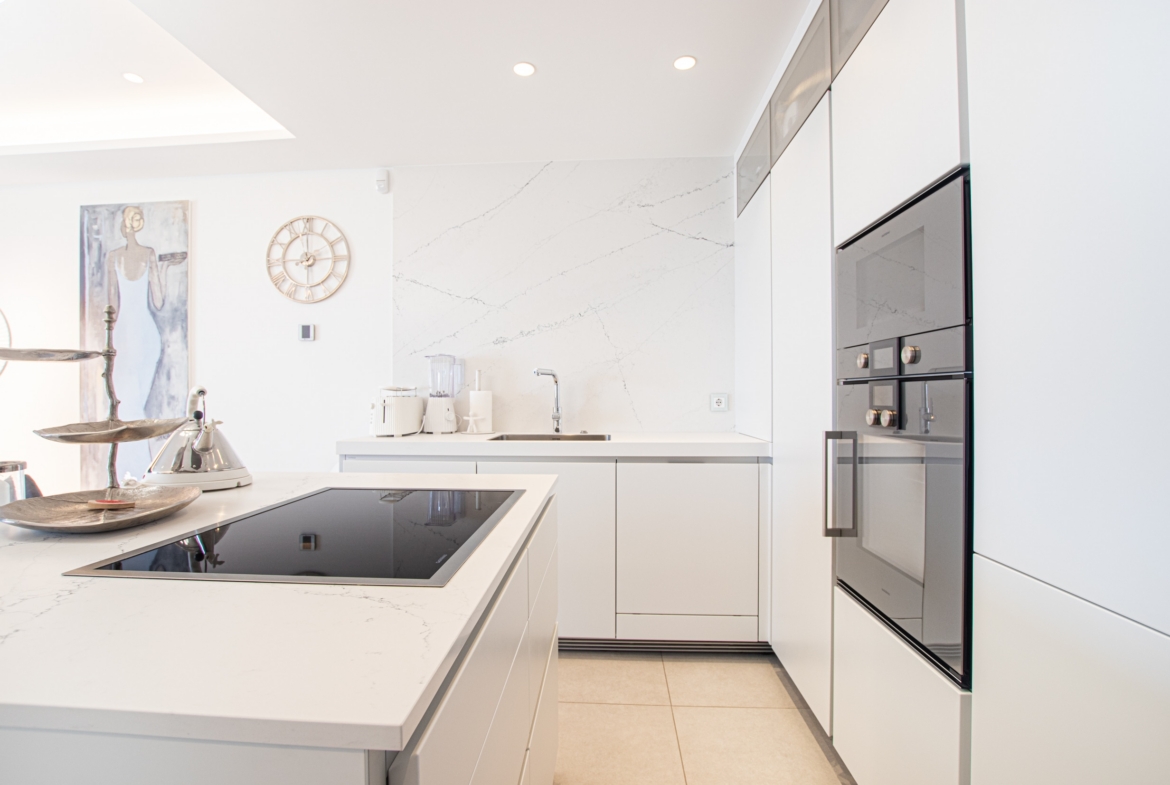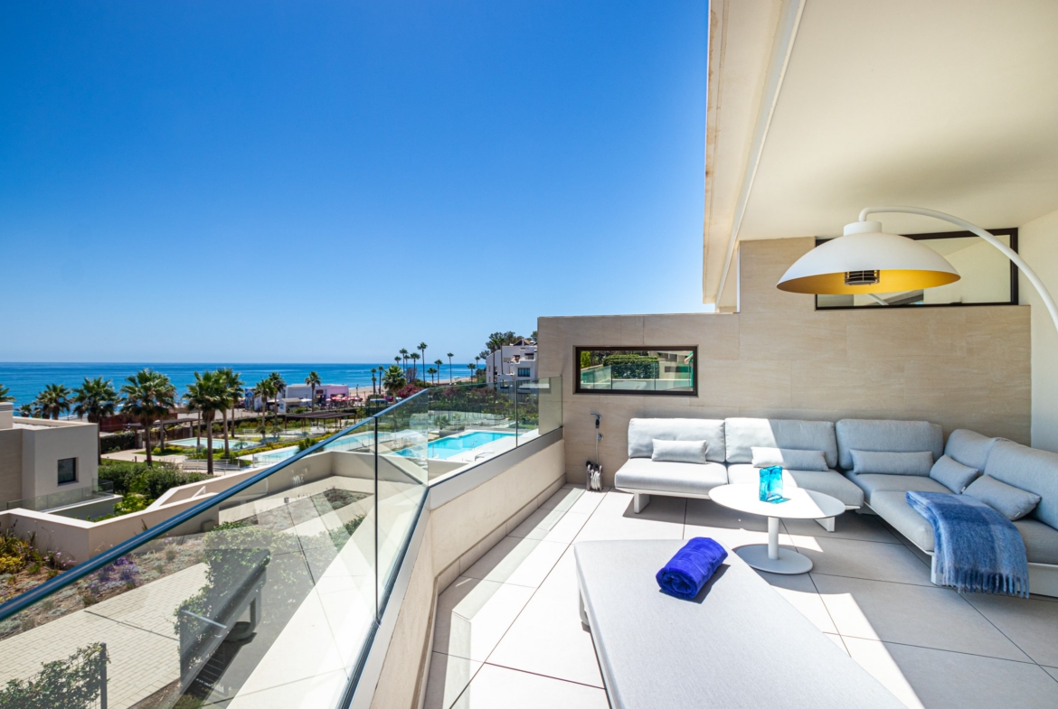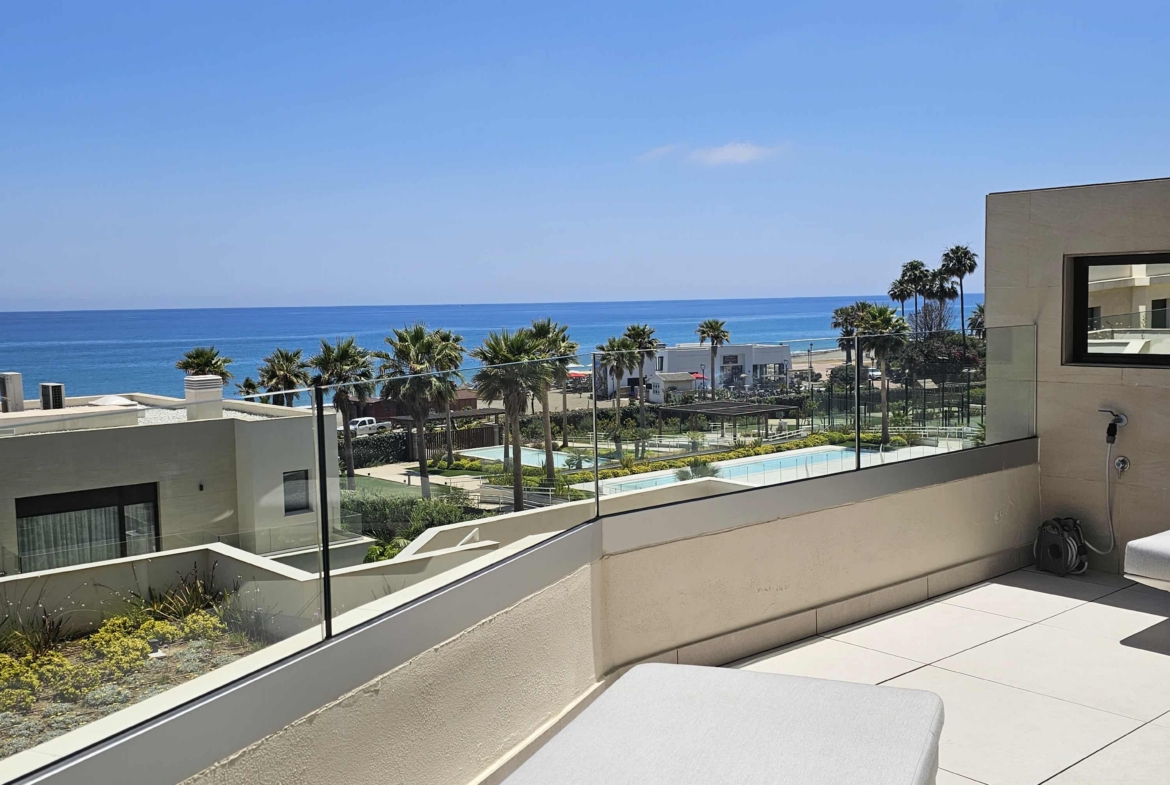 This is a perfect apartment by the sea, consisting of 2 bedrooms and 2 bathrooms, an open kitchen with an island, and a salon from where you can enjoy a magnificent view of the Mediterranean Sea. The sitting area and the master bedroom are connected to the 40m2 covered terrace. The apartment is located on the 1 floor, south facing. There is an underground garage and store room.